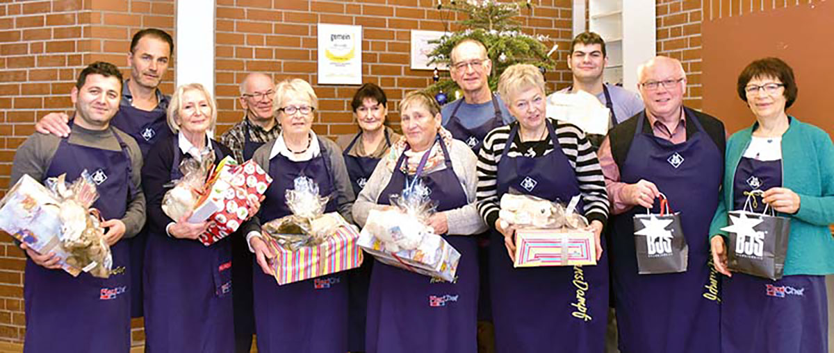 Bereits seit 1996 wird im Roncallihaus zur Weihnachtszeit ein festliches Menü an bedürftige Menschen ausgegeben. Dieses Jahr waren rund 80 Erwachsene und Kinder gekommen, um in weihnachtlicher Stimmung das leckere Essen zu genießen. Das fleißige Helferteam war mit viel Eifer dabei und zauberte einen Gänsebraten, welcher bereits seit mehreren Jahren von der Firma MKN gesponsert wird.