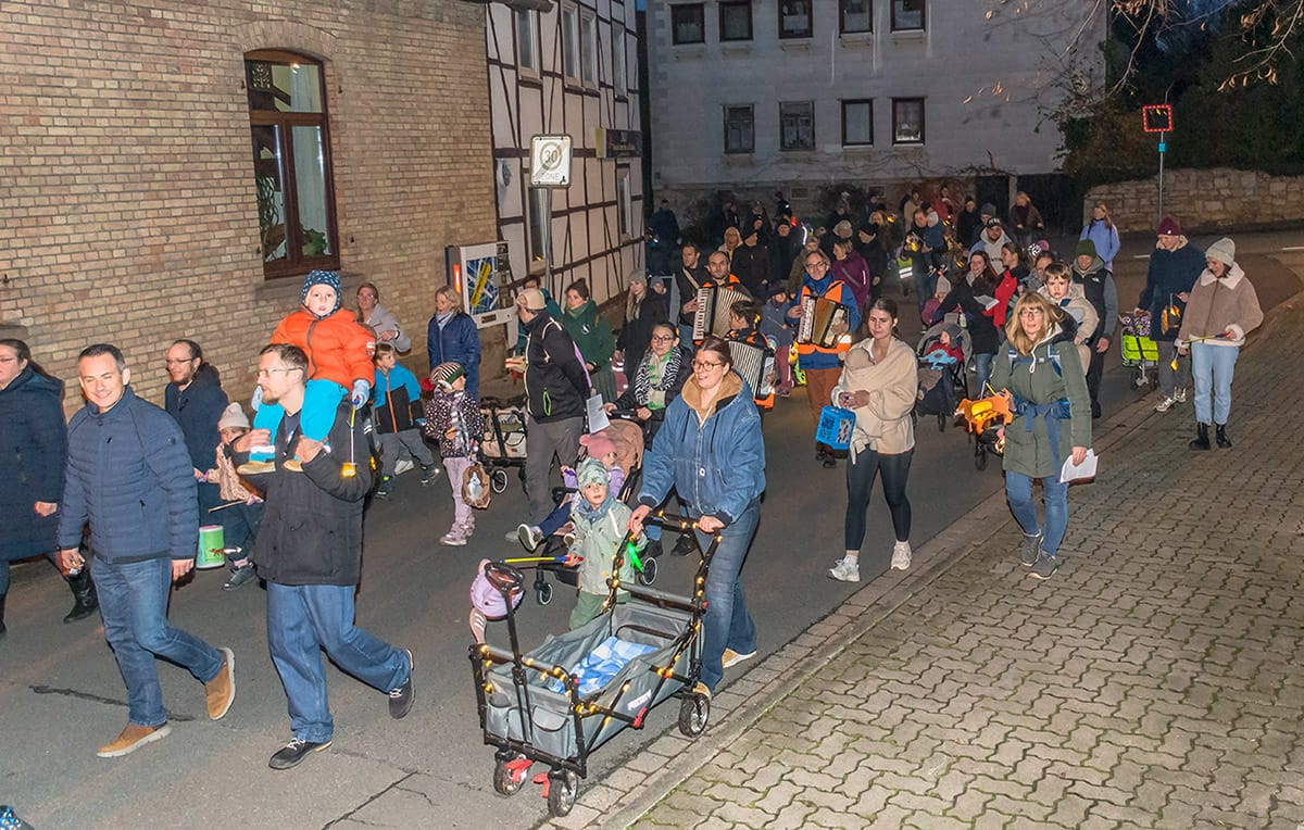 Am Wetter lag es indes nicht. Es war trocken, bei klarem Himmel. Vielleicht war es diesmal für einige Eltern arbeitsbedingt zu früh. Der Appell an den Zusammenhalt entfaltete daher seine volle Kraft nicht im Gotteshaus, sondern auf den erleuchteten Straßen. Der Großteil der kleinen und großen Laternenträger stieß erst mit Beginn des Umzuges dazu und versammelte sich direkt hinter den Mitgliedern der Jugendfeuerwehr.