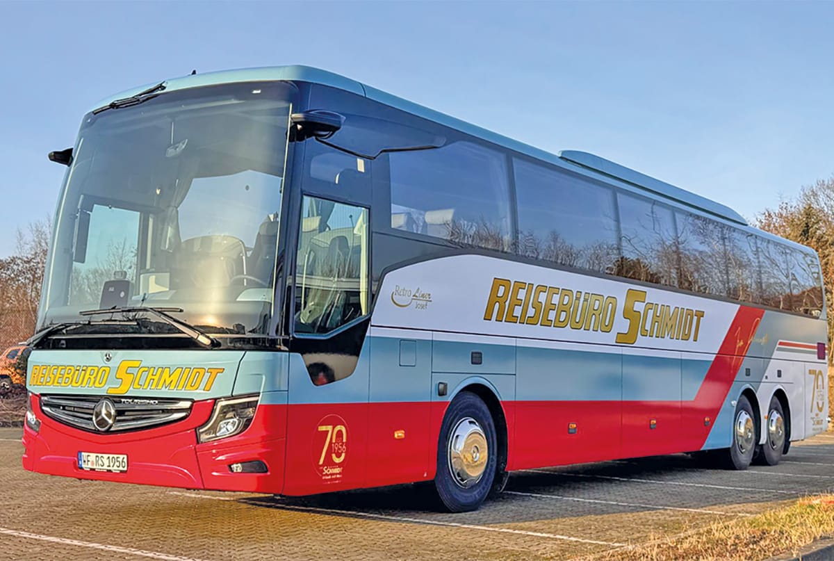 Zum Jubiläum präsentiert das Unternehmen neben den Reiseangeboten ein weiteres besonderes Highlight – der eigens gestaltete Jubiläumsbus, der den Namen „Josef“ trägt, ist eine würdige Hommage an Firmengründer Josef Schmidt. Der sogenannte Retroliner steht symbolisch für die Verbindung von Tradition und Zukunft, die das Unternehmen seit siebzig Jahren prägt.