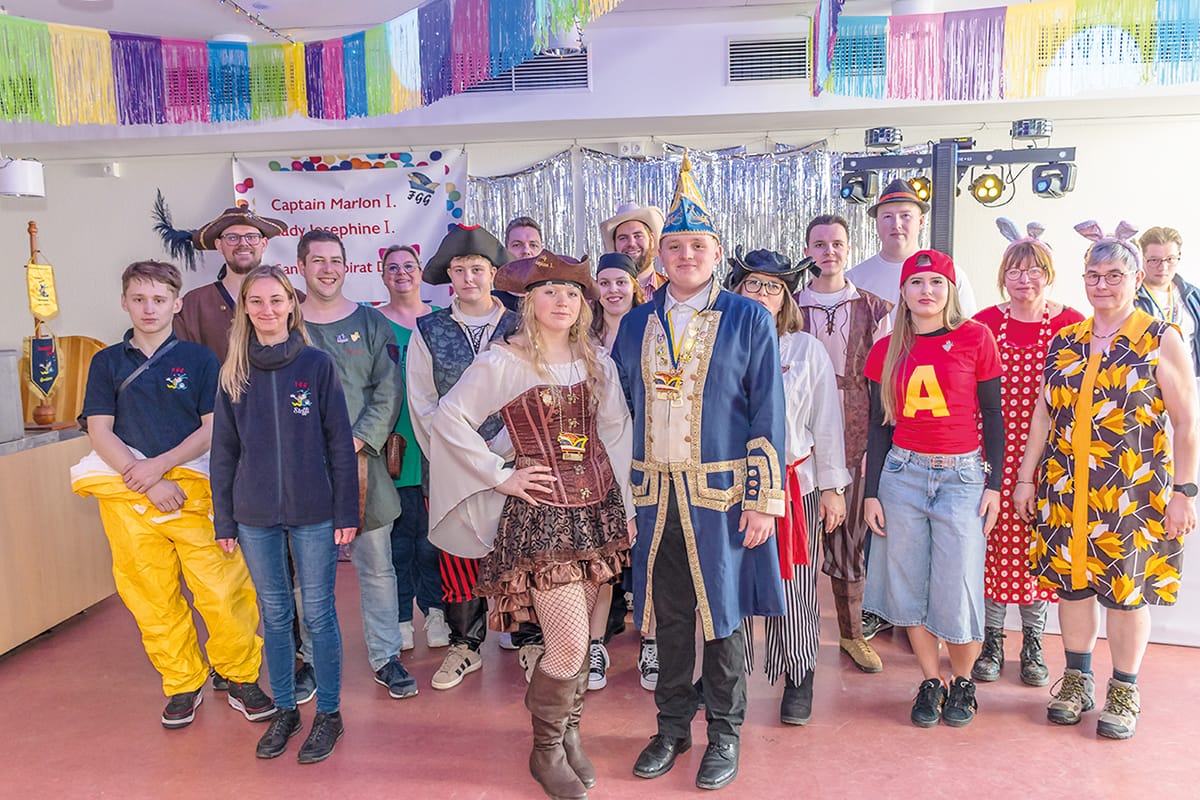 Nach dem Trubel am Nachmittag kehrte nur kurz Ruhe im Saal ein, bevor sich die Türen für die große Abendgarderobe erneut öffneten. Aus dem tobenden Kinderparadies wurde ab 19.30 Uhr ein eleganter und zugleich ausgelassener Maskenball. Um 20.11 Uhr startete das offizielle Programm, und die Blicke richteten sich auf die Bühne. Ein besonderes Augenmerk lag dabei auf der Besatzung des Narrenschiffs: Während das royale Gespann Captain Marlon I. (Marlon Breidl) und seine Lady Josephine I. (Josephine Feicke) souverän durch den Abend führte, feierte Denny Zerbe eine gelungene Premiere. Er schlüpfte in dieser Session erstmals in die Rolle des Sandbachpiraten und wurde von der Menge bestens aufgenommen. „Er passt perfekt in unsere Truppe und hat das Publikum sofort mitgerissen“, zeigte sich auch Captain Marlon I. begeistert von seinem neuen Bühnenpartner.